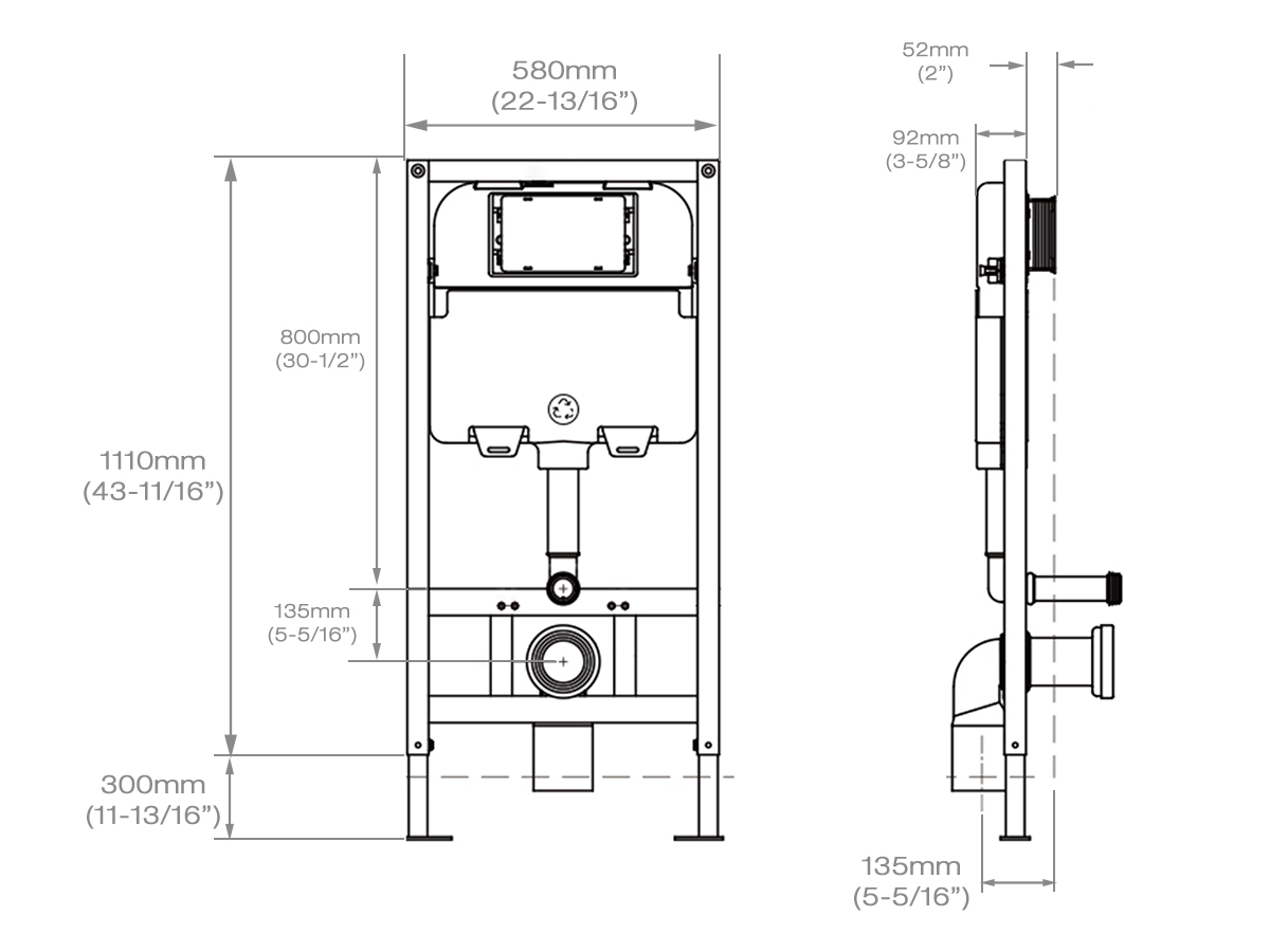 MEJE #MZE014P - In-Wall Water Tank Carrier with Flush Actuator Plate