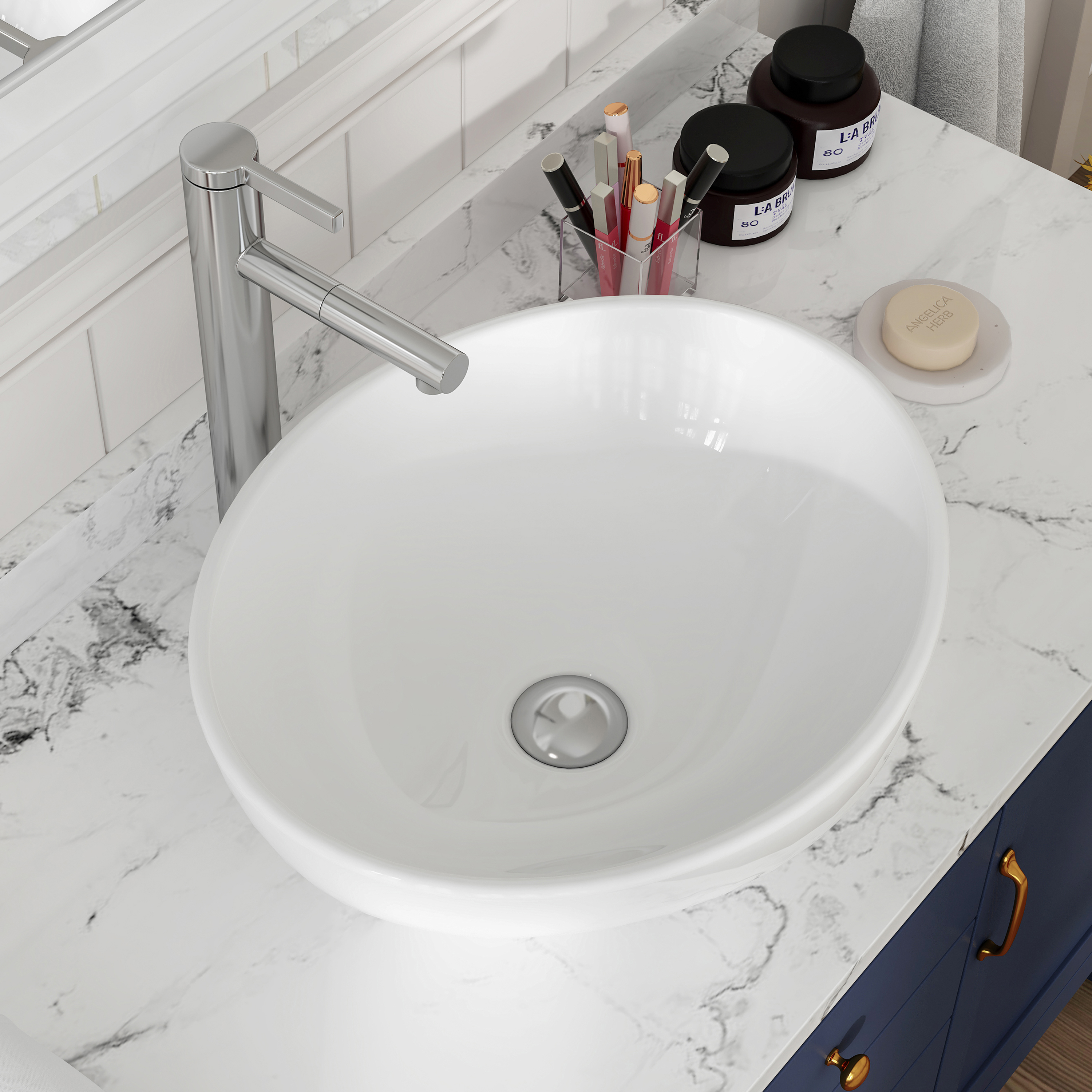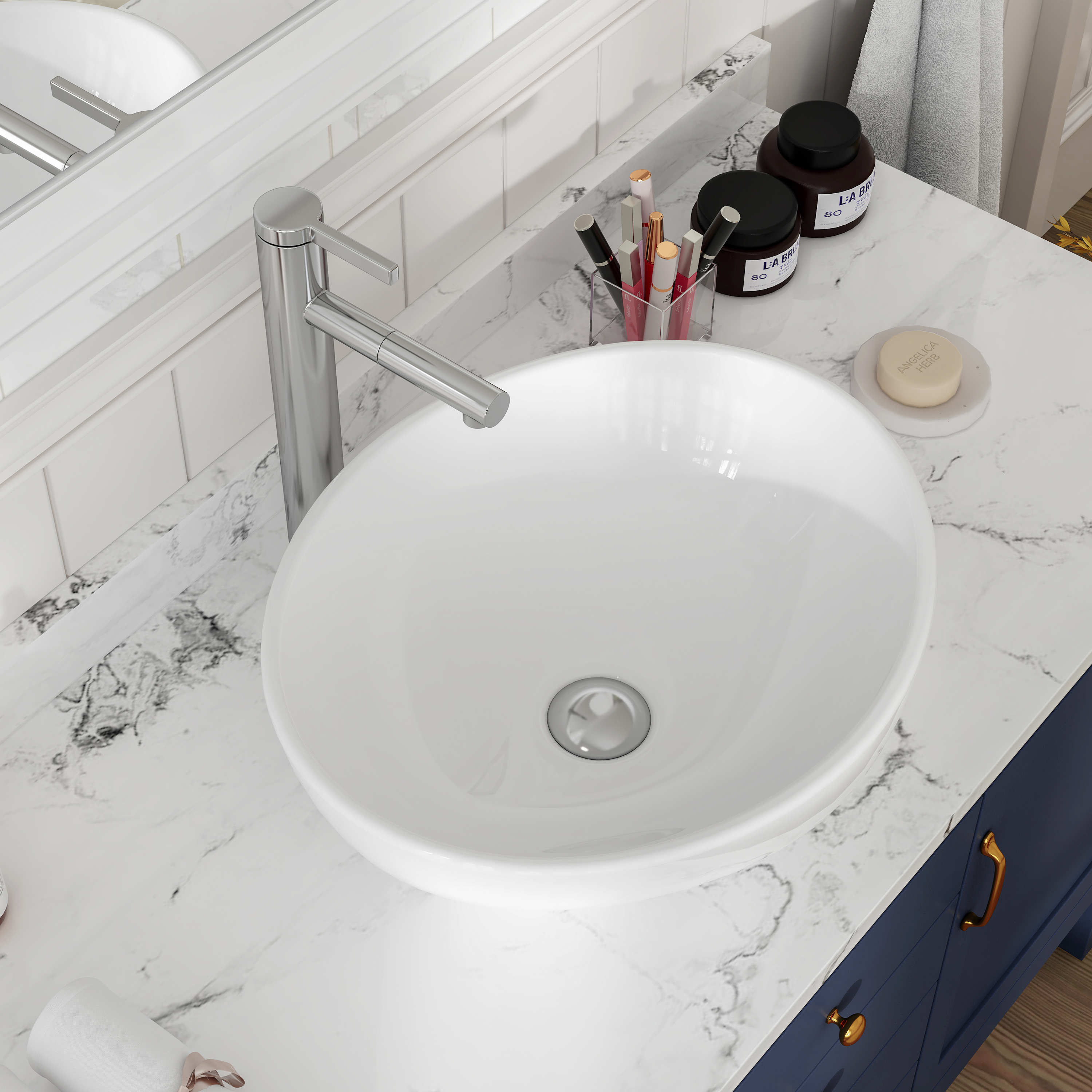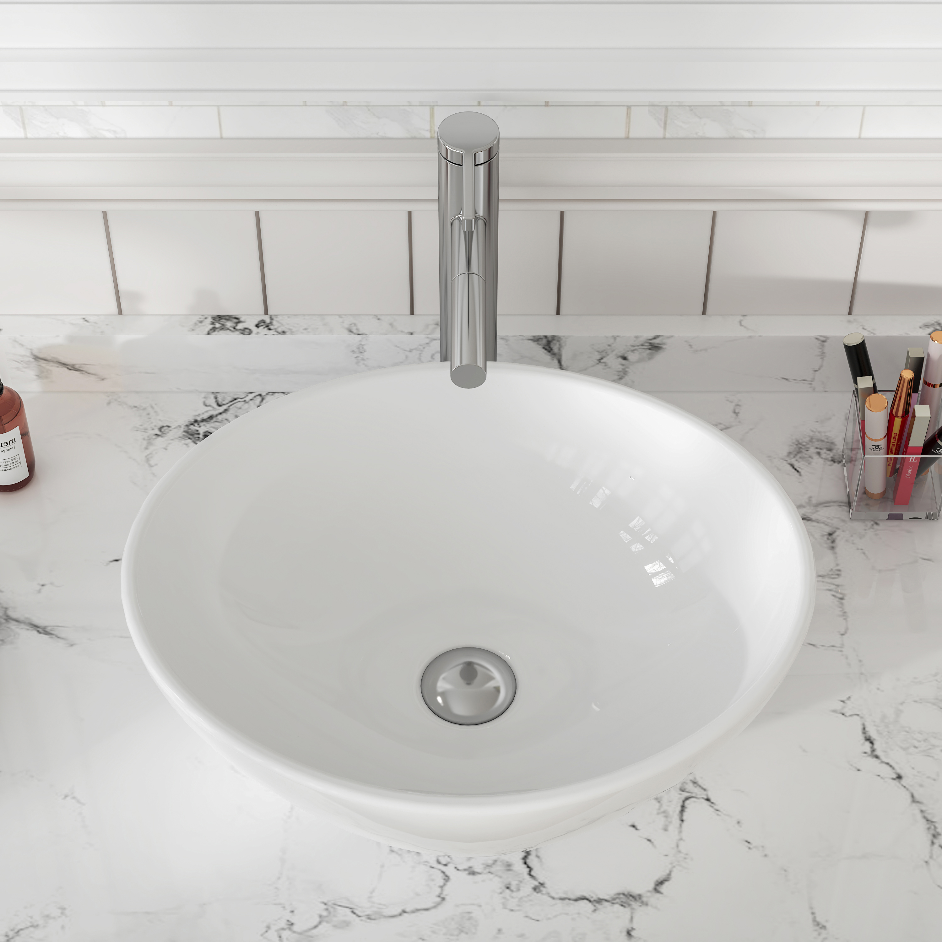 MEJE 16x13 Inch Oval White Ceramic Vessel Sink,Modern Egg Shape Bowl