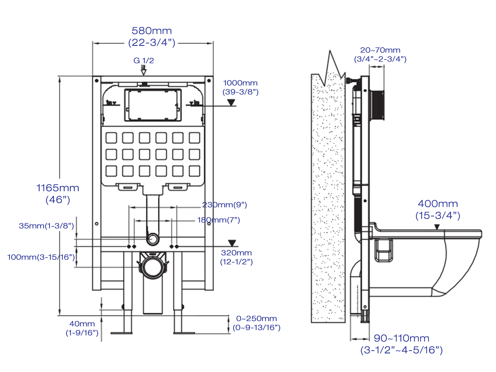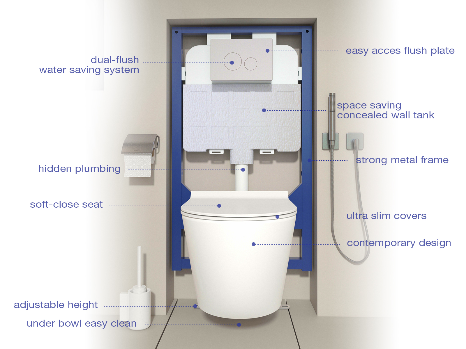 MEJE in-Wall Tank Carrier for Wall Mounted Toilets, White