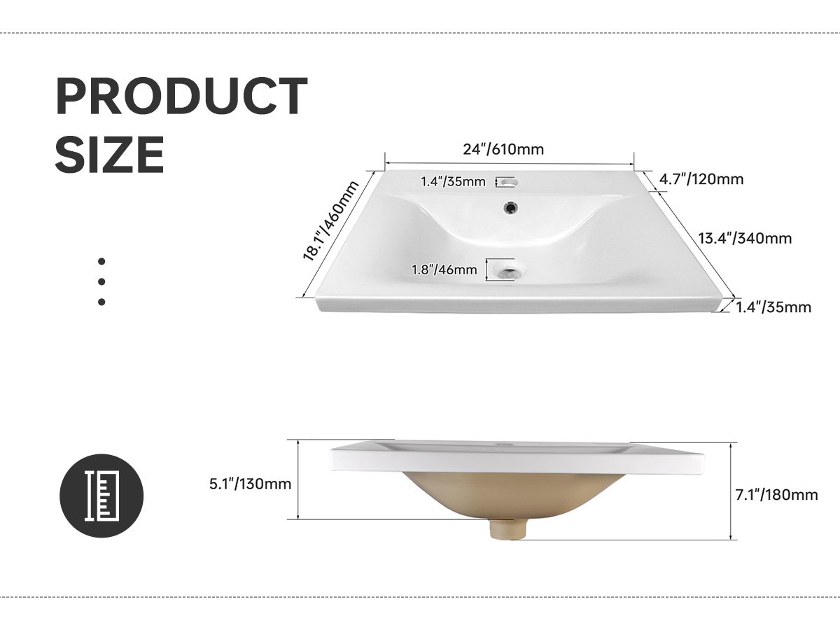 [ High-quality clay ] : This drop-in vessel sink is made of real fire-resistant clay, a special white clay that is fired at a high temperature for extremely high strength and durability. The sink surface can maintain beautiful and reliable performance for many years.