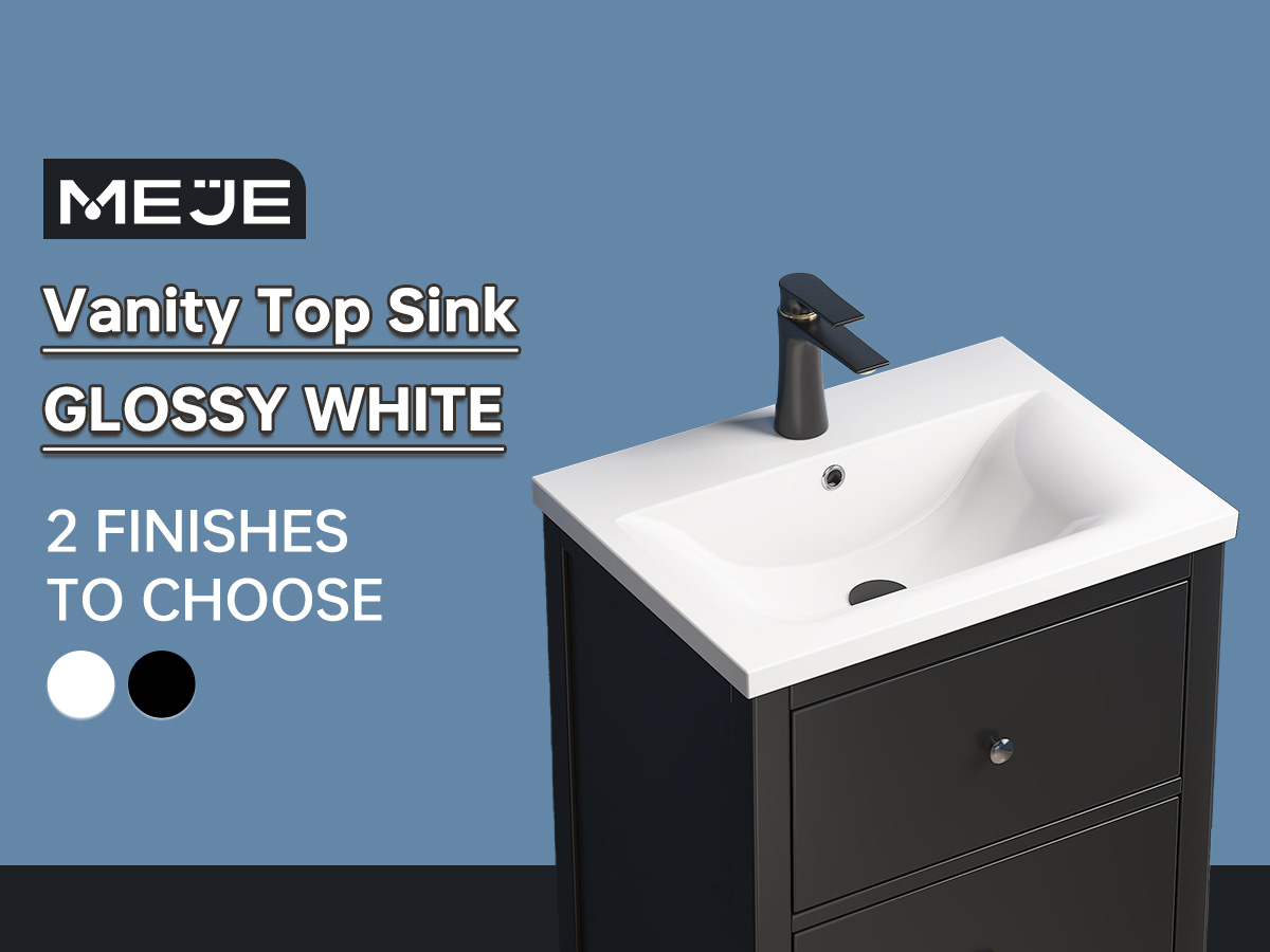 This vanity top sink with glazed surfaces offer a sleek, glossy finish that's durable, easy to clean, and resistant to stains and scratches |