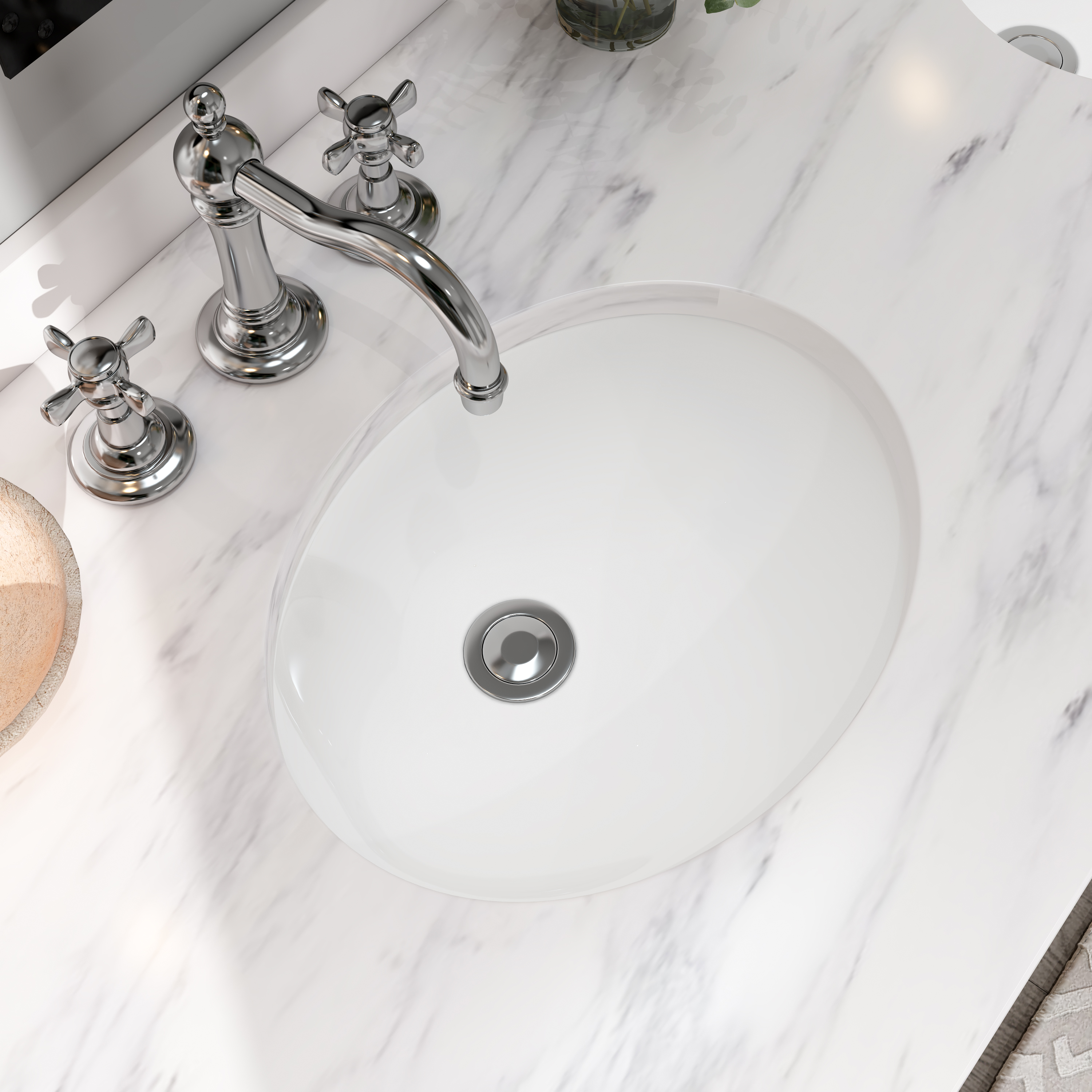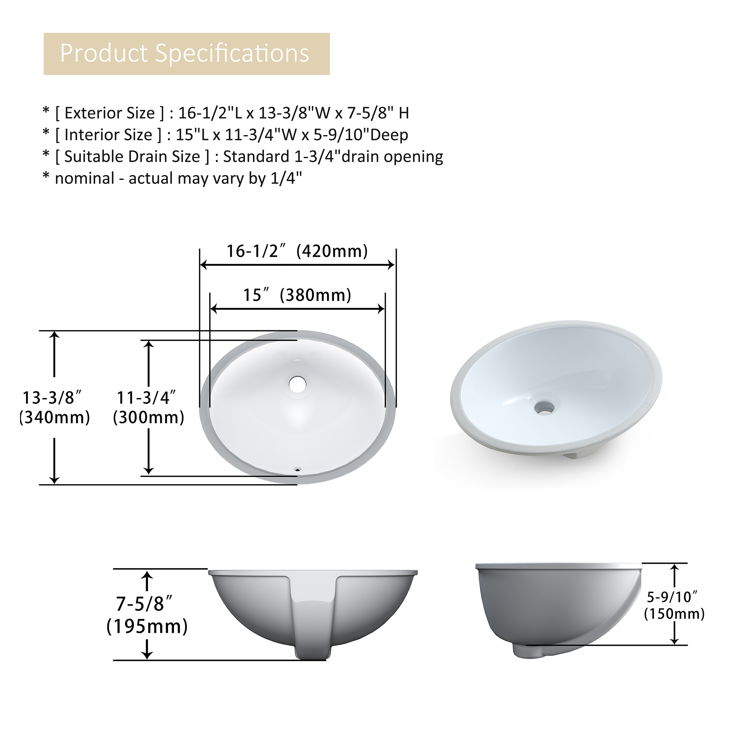 MEJE 16.5"x13" Undermount Oval Bathroom Sink, Porcelain Ceramic White Vanity Top Sink with Overflow