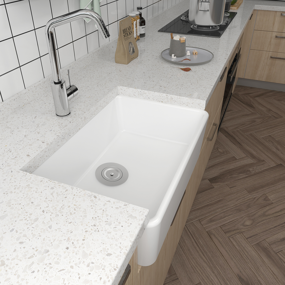 Made from made of real fire-resistant clay,Ceramic White Kitchen Sink can maintain beautiful and reliable performance for many years.