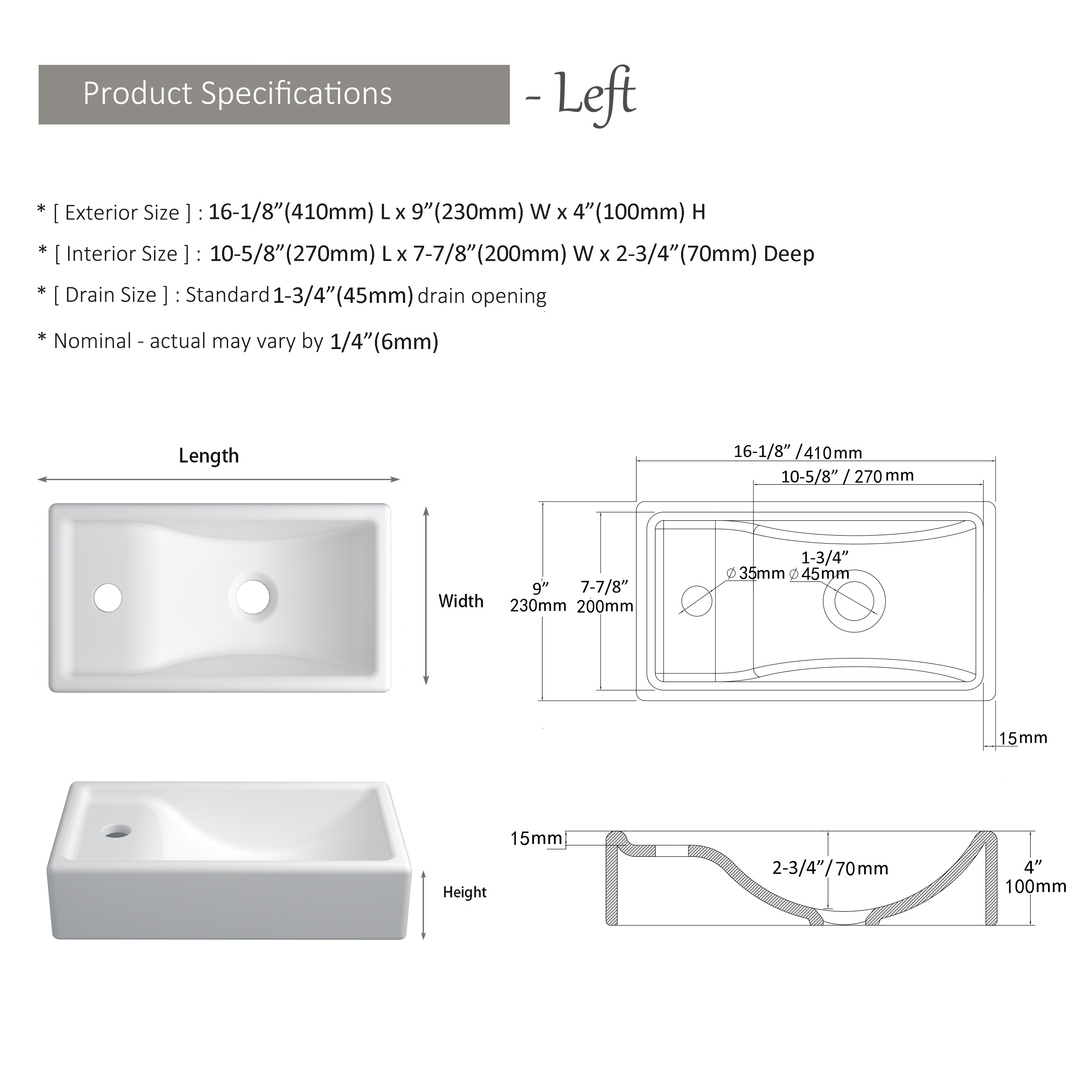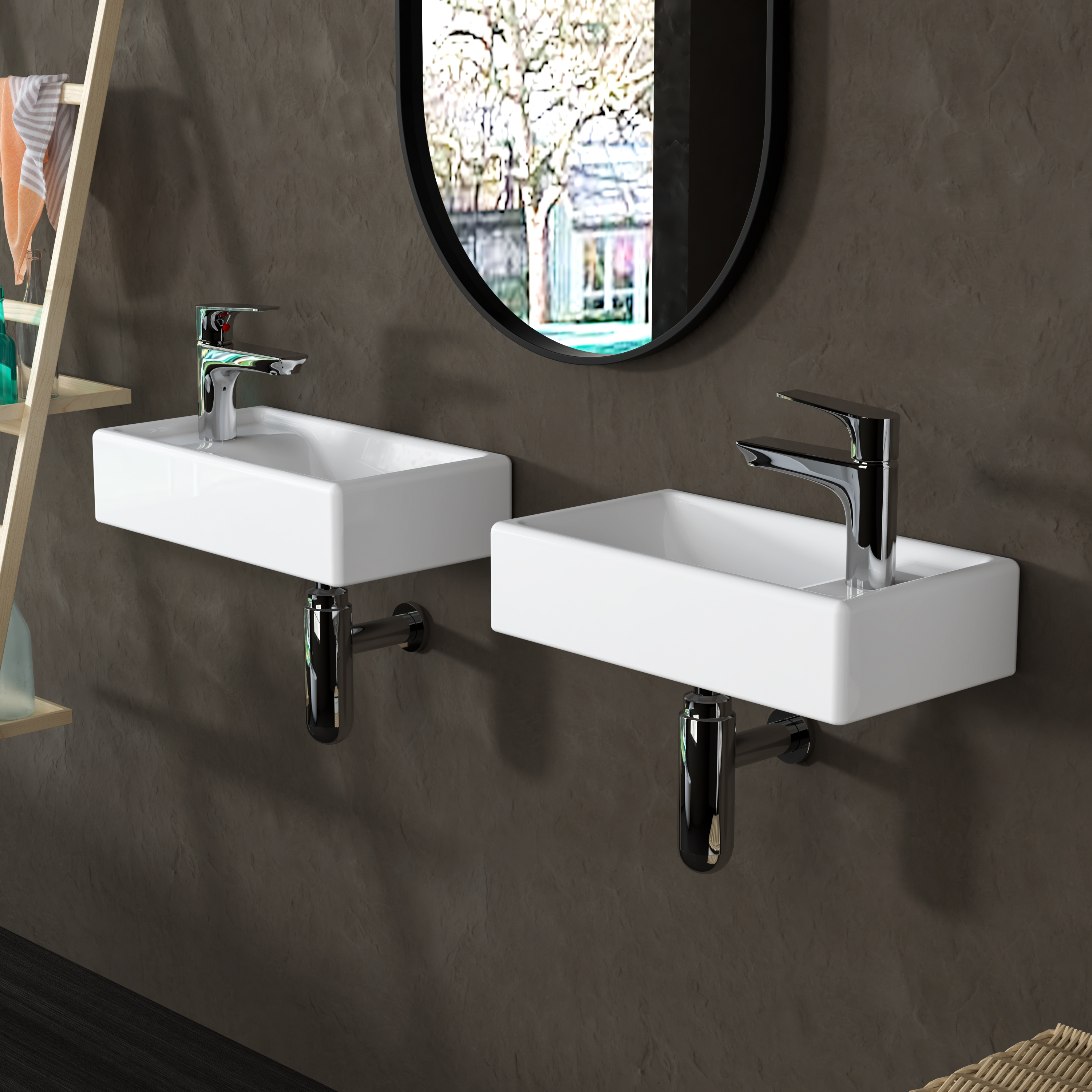 MEJE 16-Inch Wall Hung Basin Sink Combo, Small Cloakroom Basin