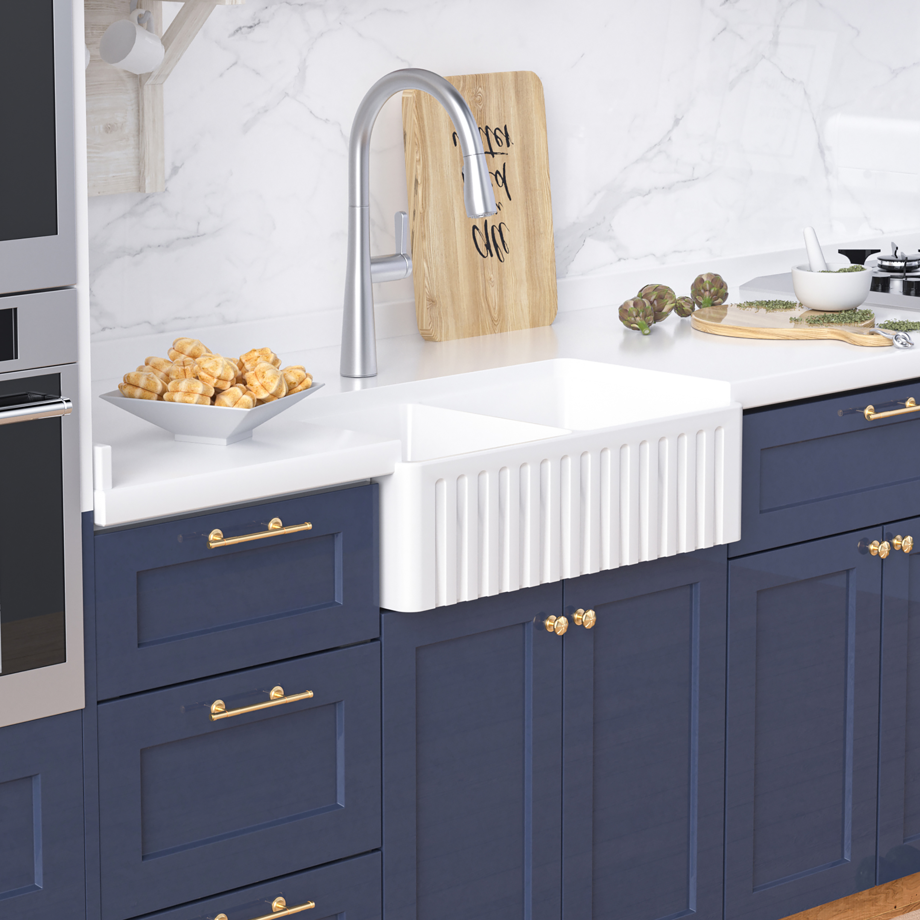 This Apron-front Kitchen Sink provide ample space for washing large pots and pans, while also adding a rustic, stylish element to the kitchen decor.