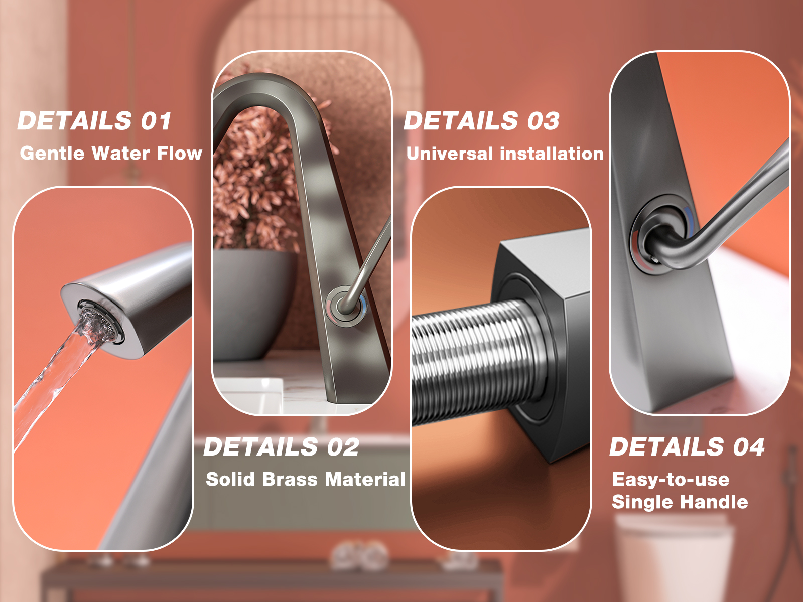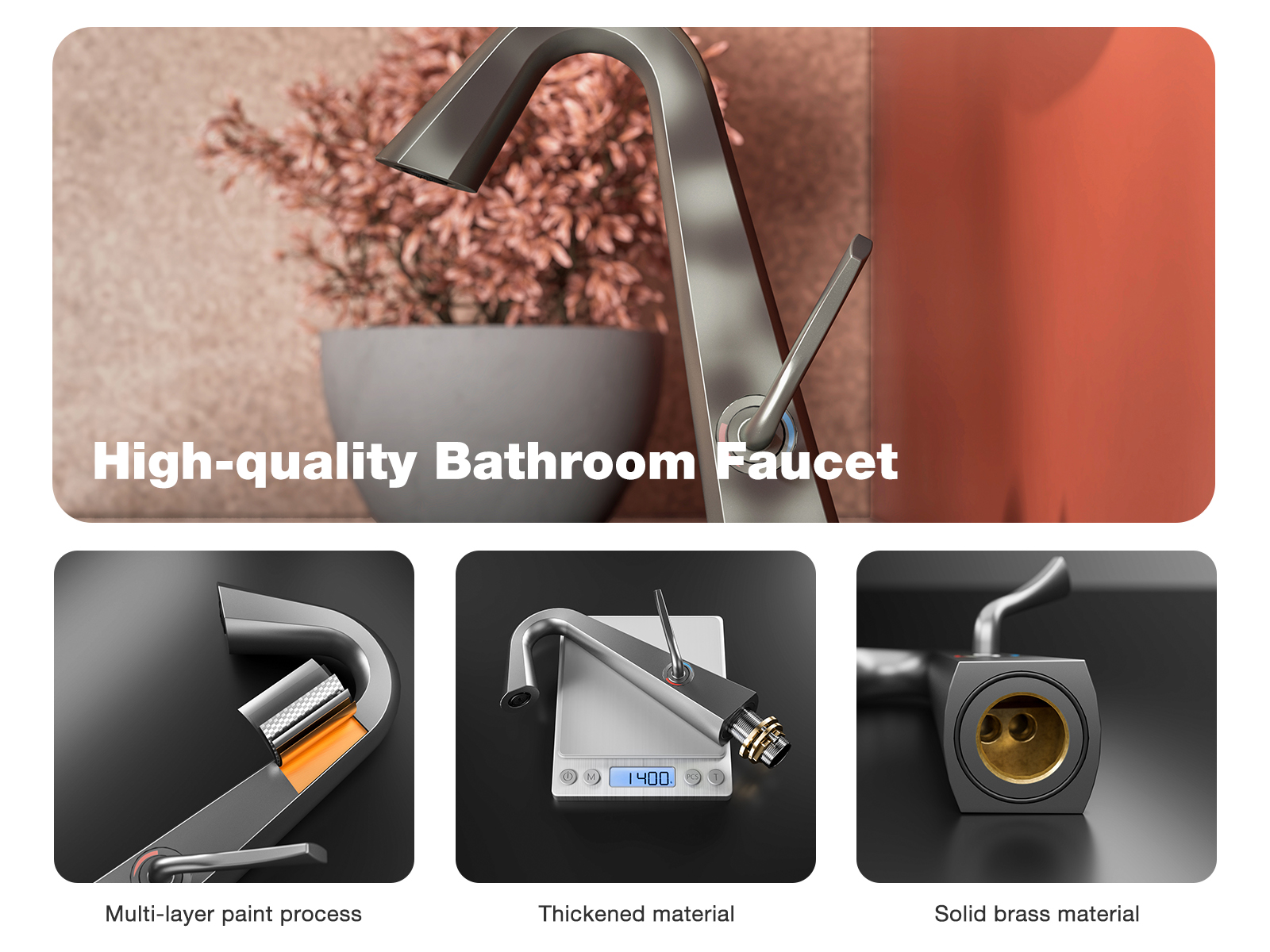 The sleek and elegant design of bathroom sink faucet , combined with the Matt Grey Color, brings a touch of sophistication to your bathroom sink.