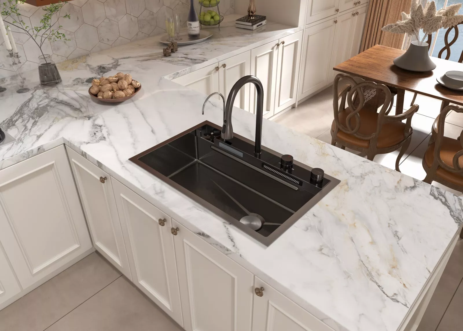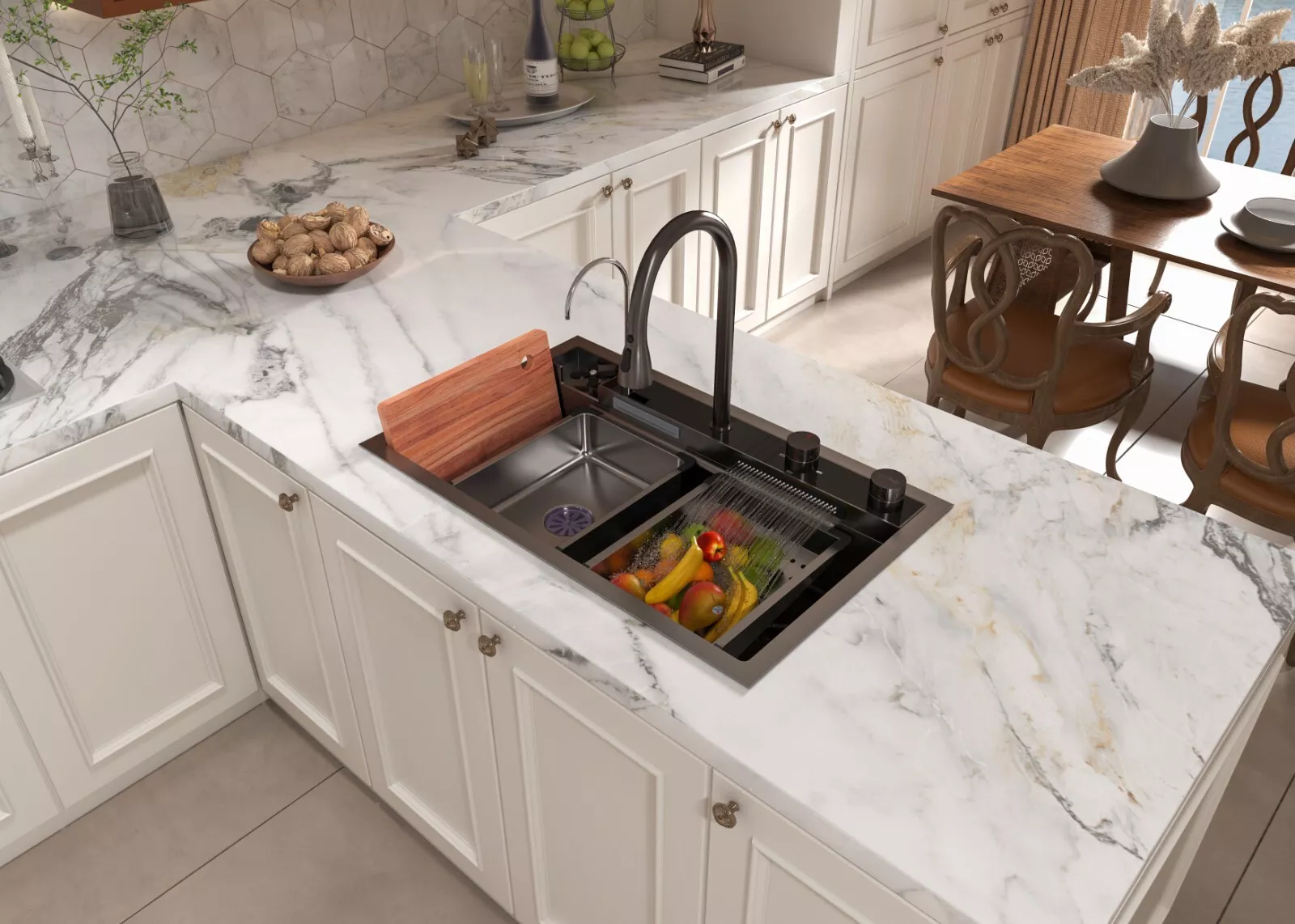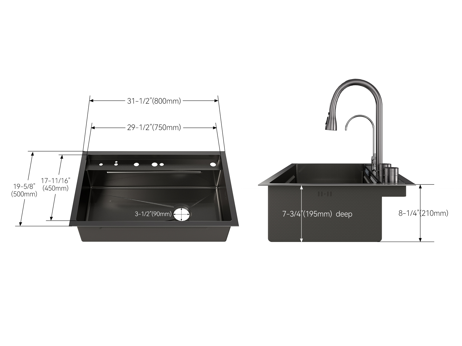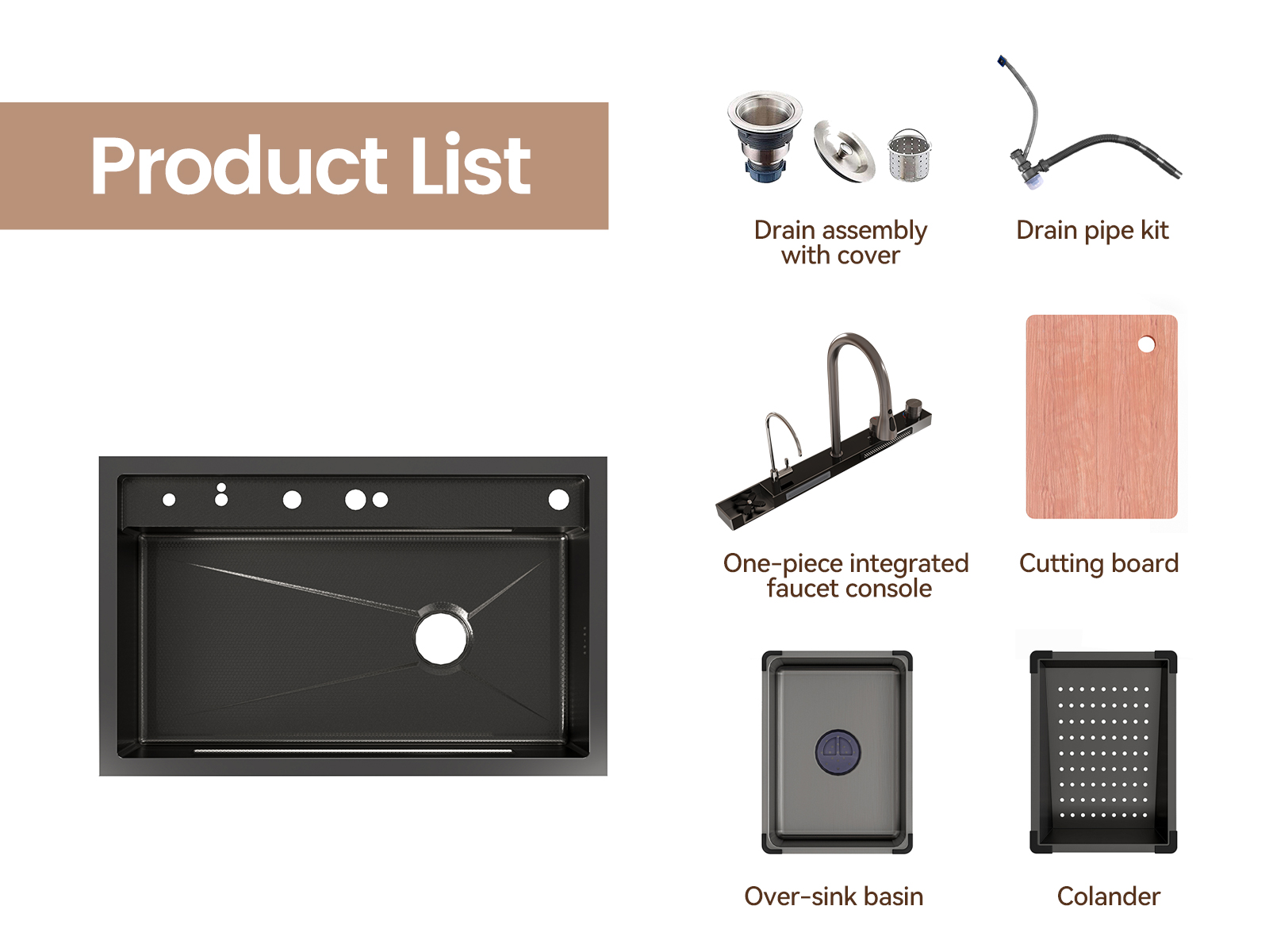 MEJE 80x50cm Stainless Steel Waterfall Sink, Wash Basket