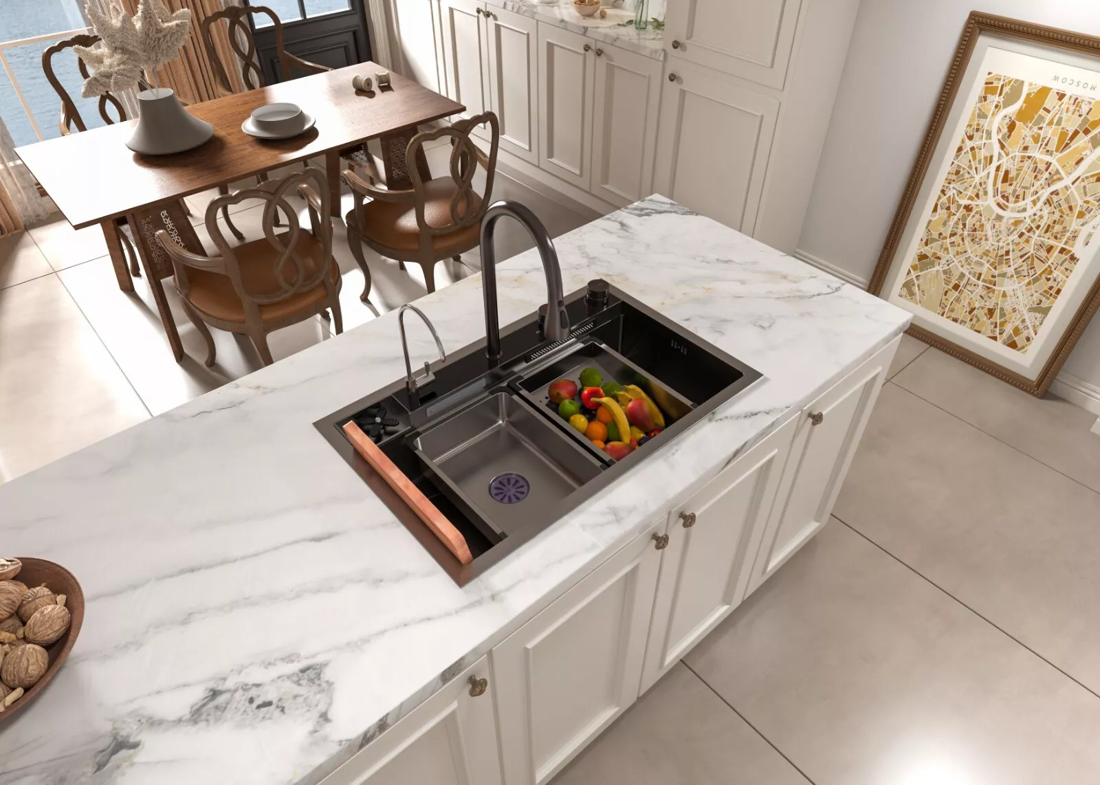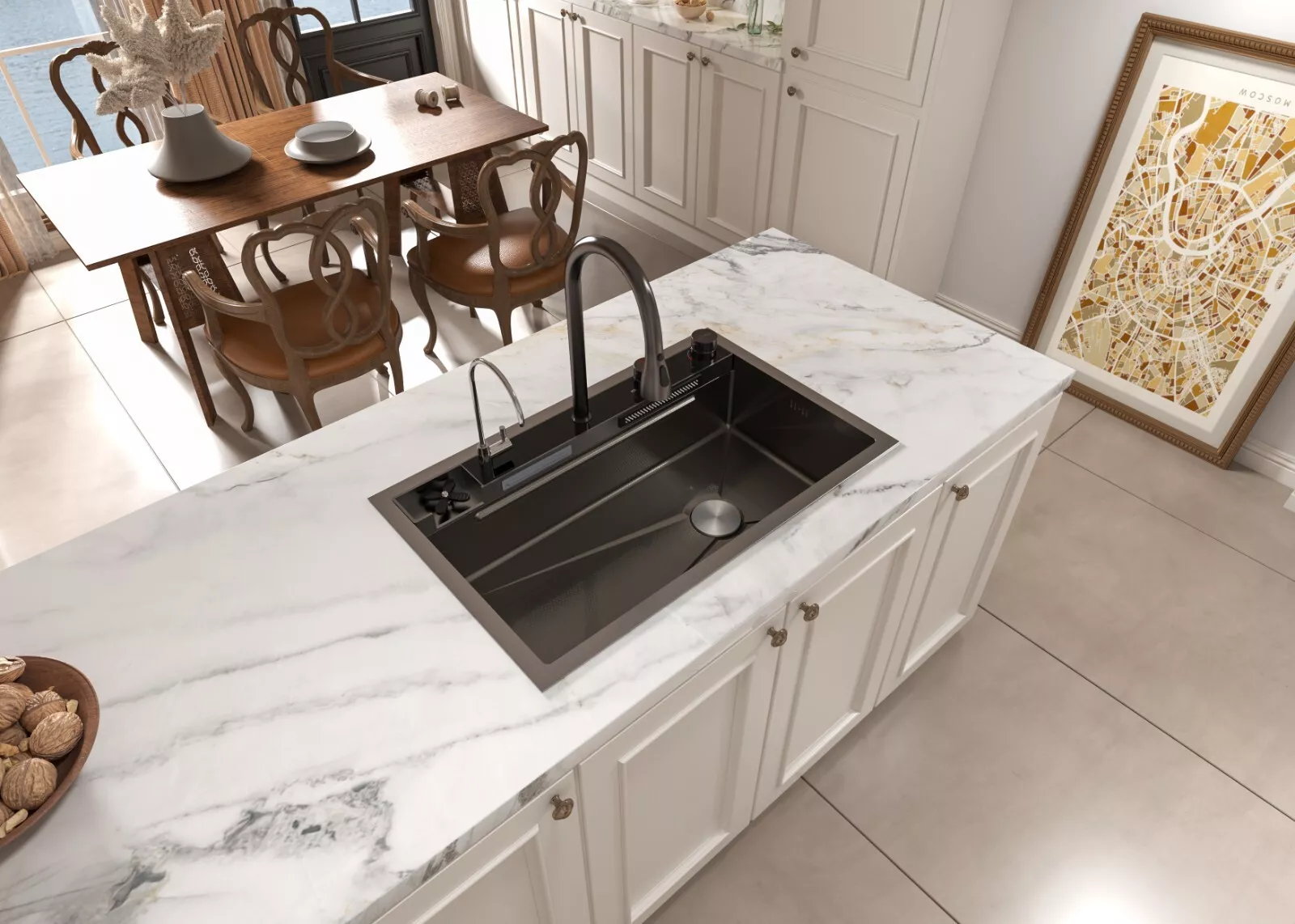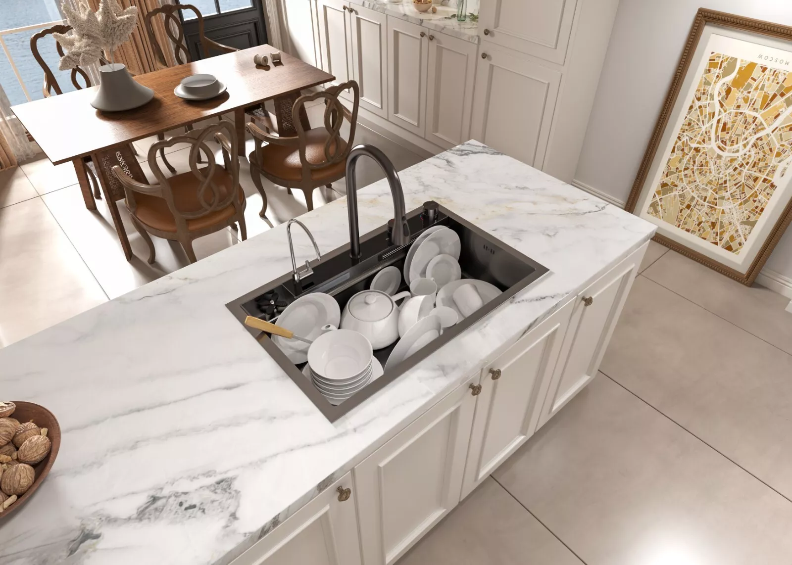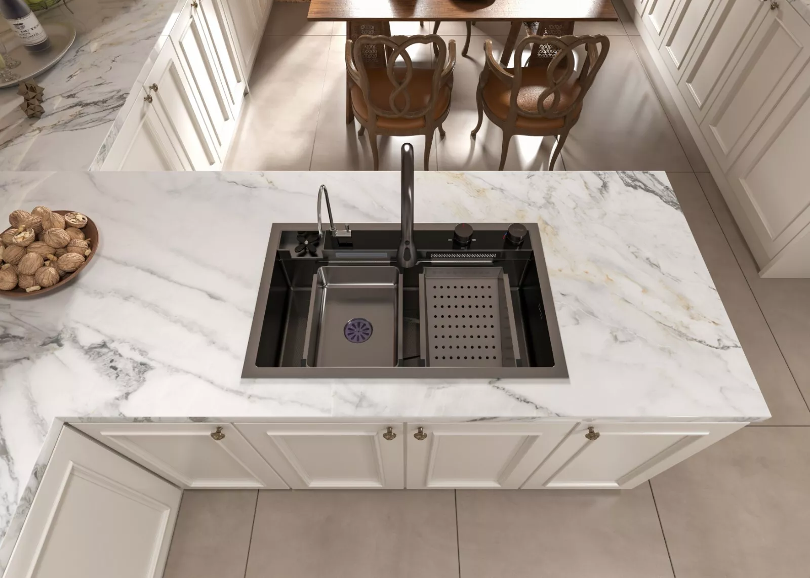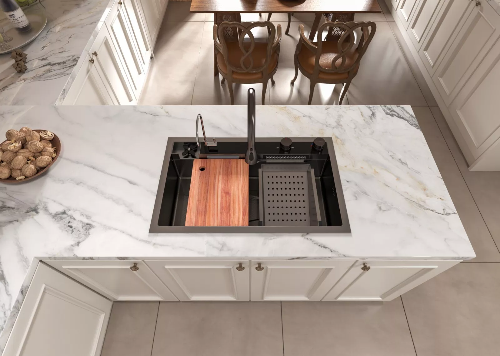 MEJE 80x50cm Stainless Steel Waterfall Sink, Wash Basket