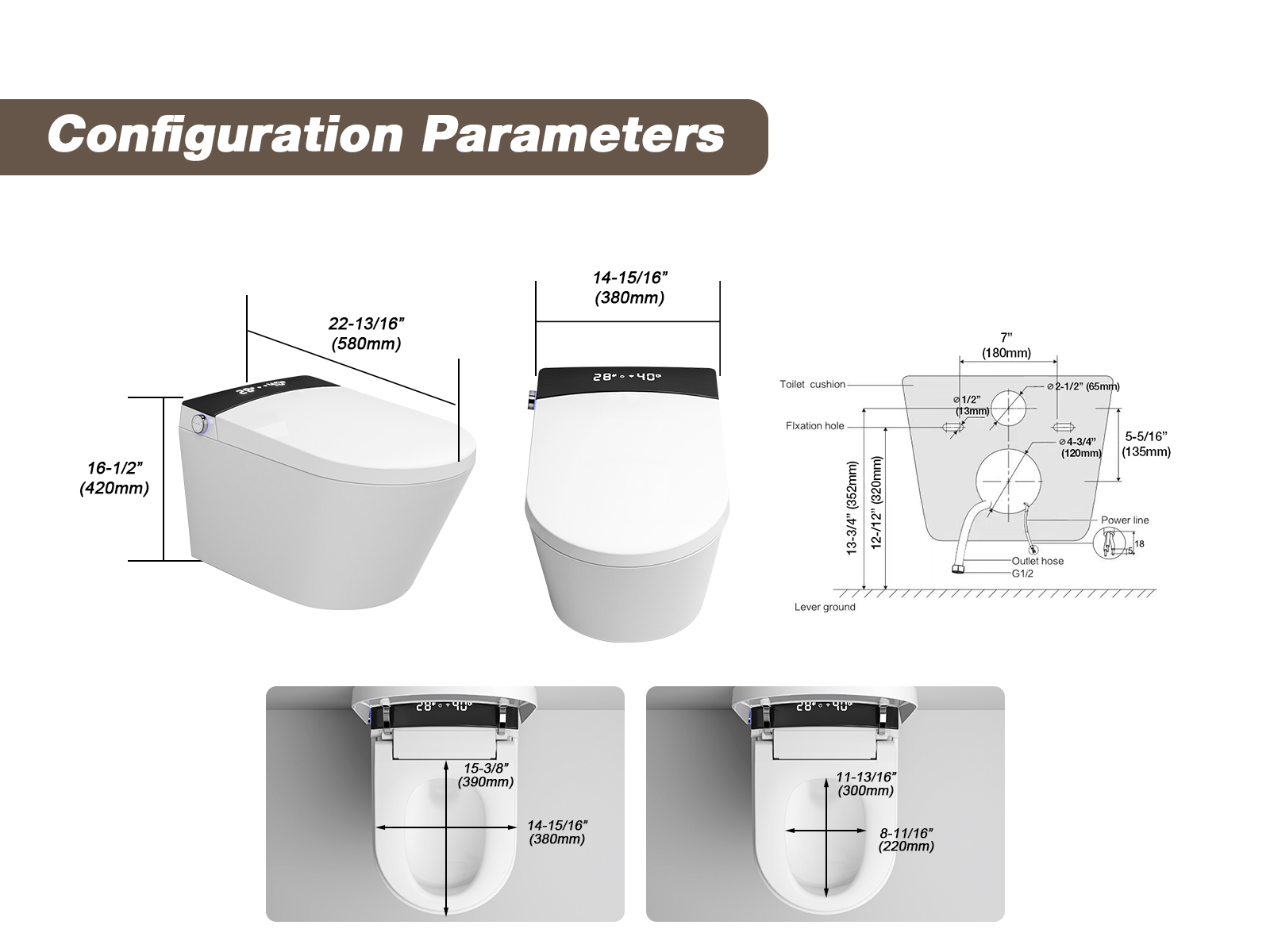 【What Included 】 : Wall Hung Toilet Bowl + Soft Closed Smart Toilet Bidet Seat + Mounting Hardware and Installation Manual.
