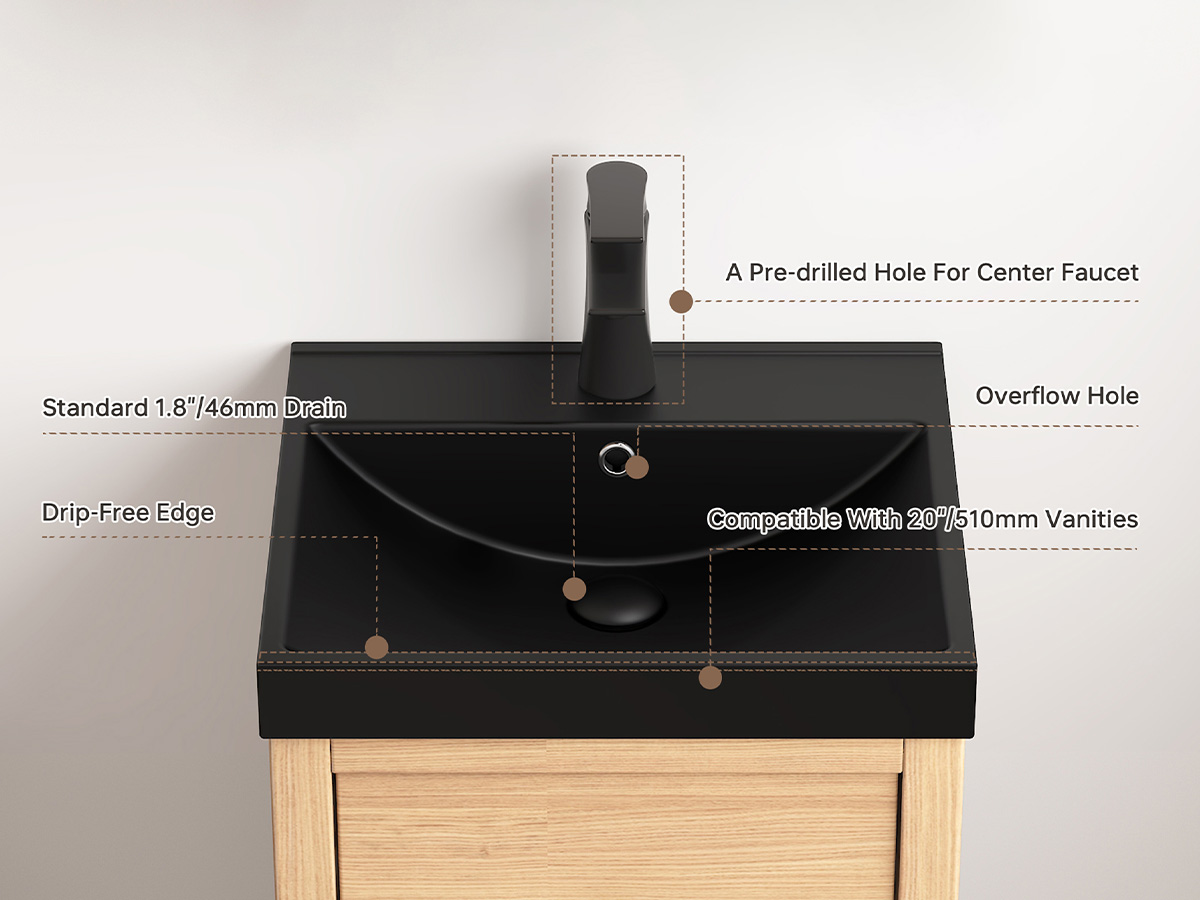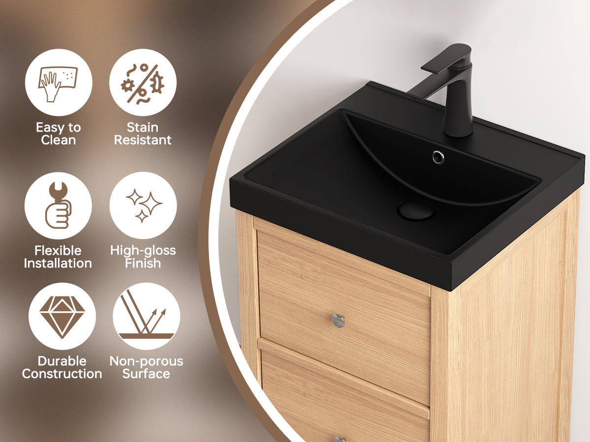 This vanity top sink with glazed surfaces offer a sleek, glossy finish that's durable, easy to clean, and resistant to stains and scratches |
