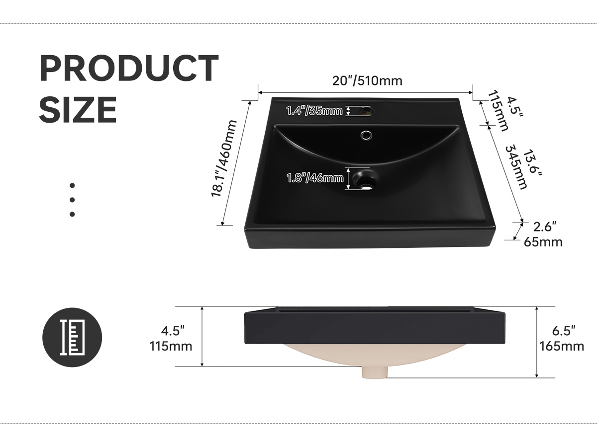 [ High-quality clay ] : This drop-in vessel sink is made of real fire-resistant clay, a special white clay that is fired at a high temperature for extremely high strength and durability. The sink surface can maintain beautiful and reliable performance for many years.