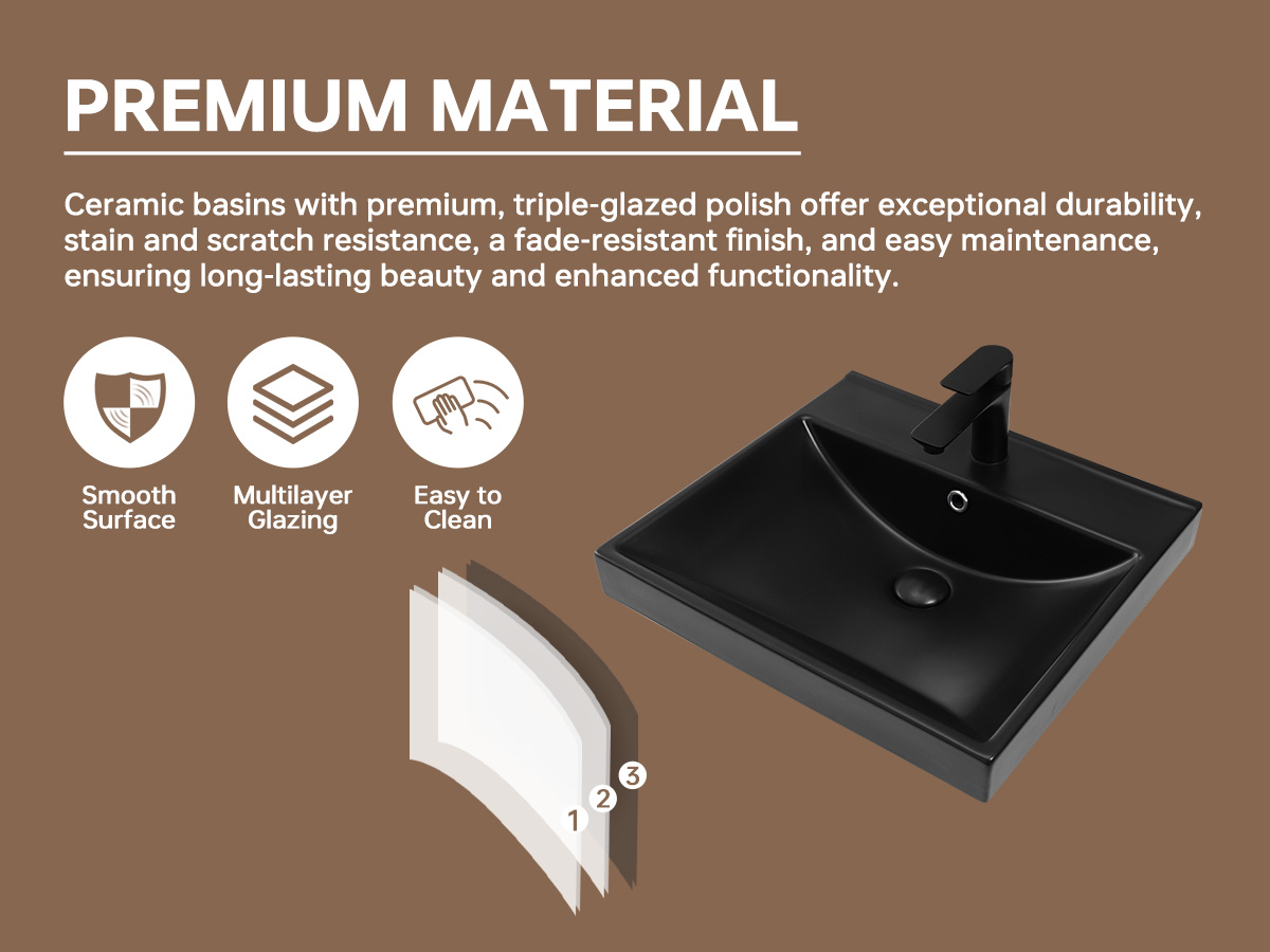 [Easy Clean Rectangle Vessel Sink] :This Bathroom vanity top sink made from high-quality ceramic that’s extremely resistant to scratches and stains, and will not fade over time.