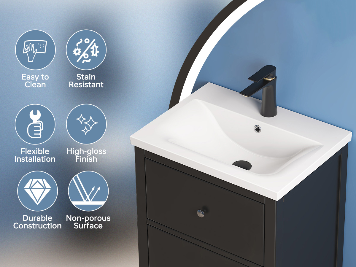 This vanity top sink with glazed surfaces offer a sleek, glossy finish that's durable, easy to clean, and resistant to stains and scratches |