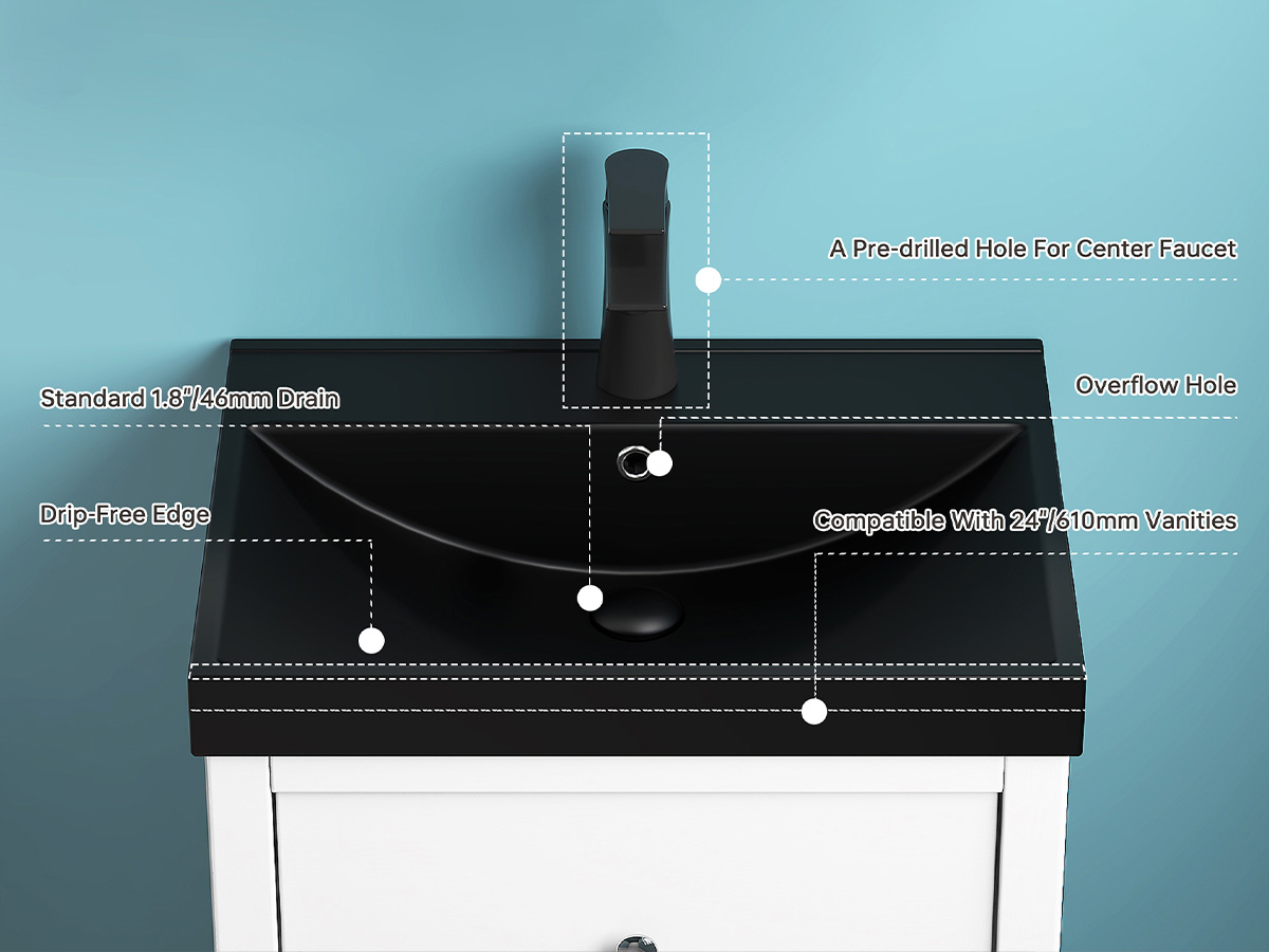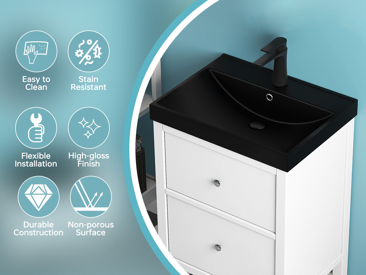 This vanity top sink with glazed surfaces offer a sleek, glossy finish that's durable, easy to clean, and resistant to stains and scratches | Splash-proof Design
