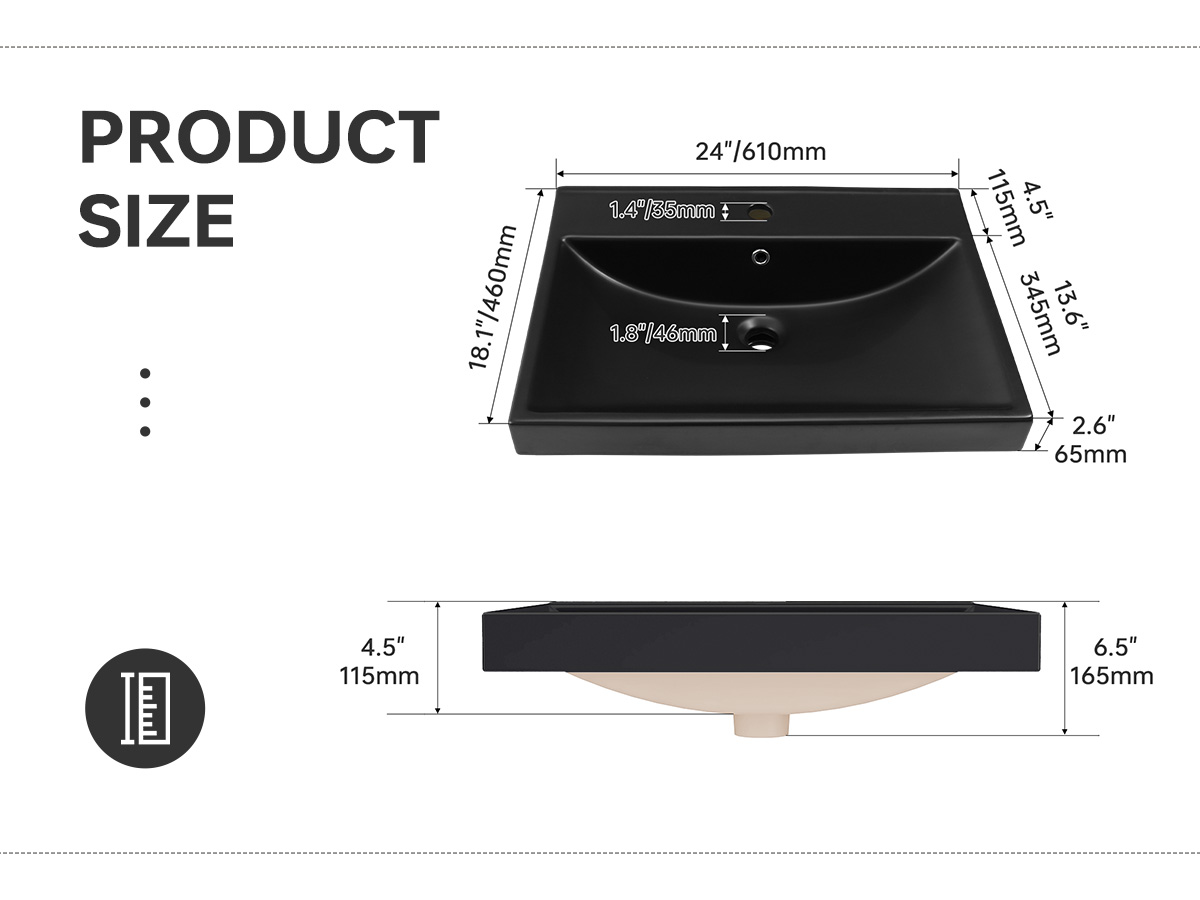 [ High-quality clay ] : This drop-in vessel sink is made of real fire-resistant clay, a special white clay that is fired at a high temperature for extremely high strength and durability. The sink surface can maintain beautiful and reliable performance for many years.