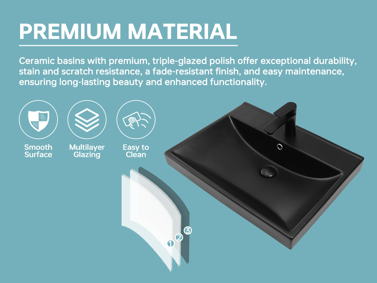 [Easy Clean Rectangle Vessel Sink] :This Bathroom vanity top sink made from high-quality ceramic that’s extremely resistant to scratches and stains, and will not fade over time.