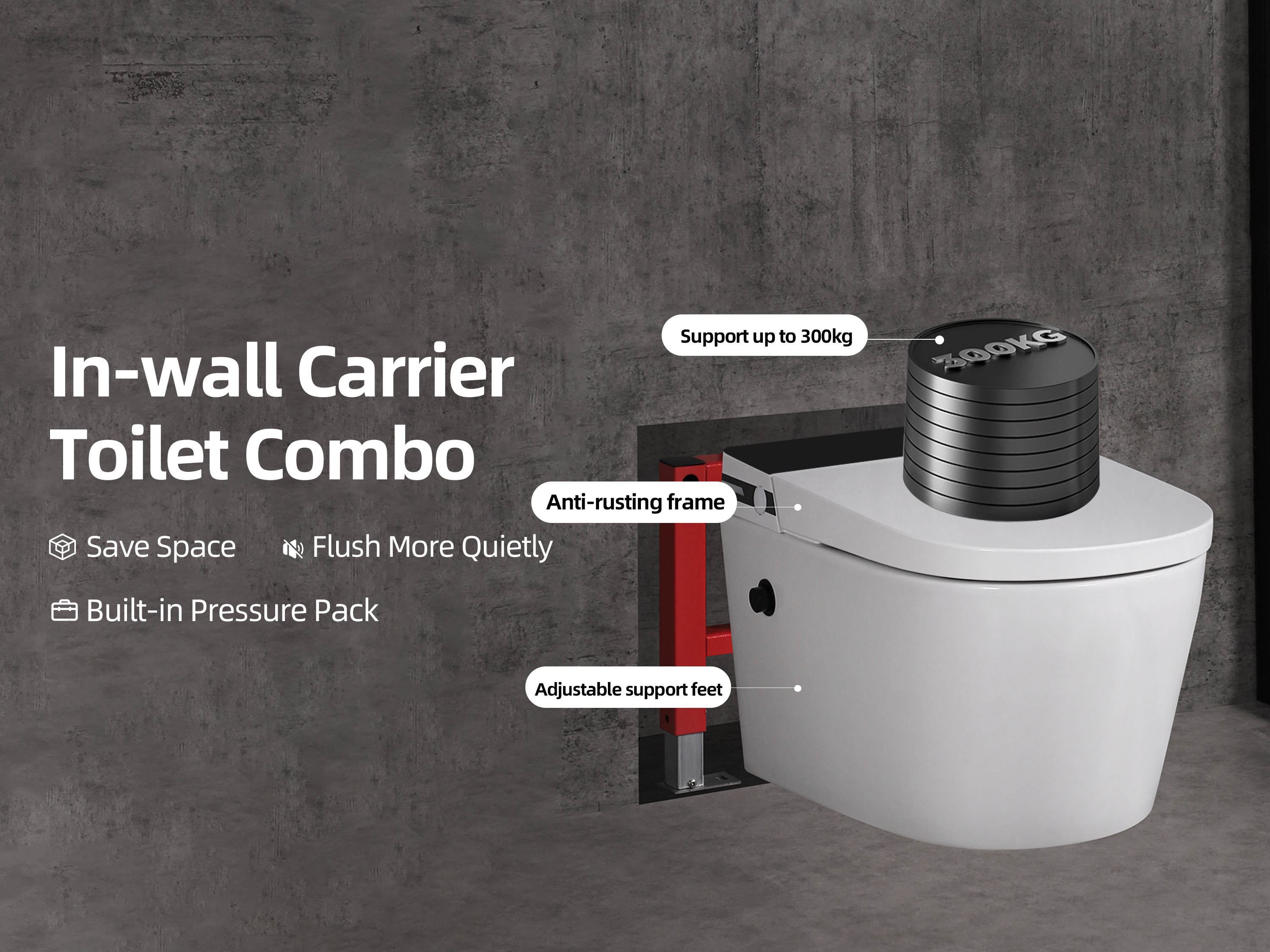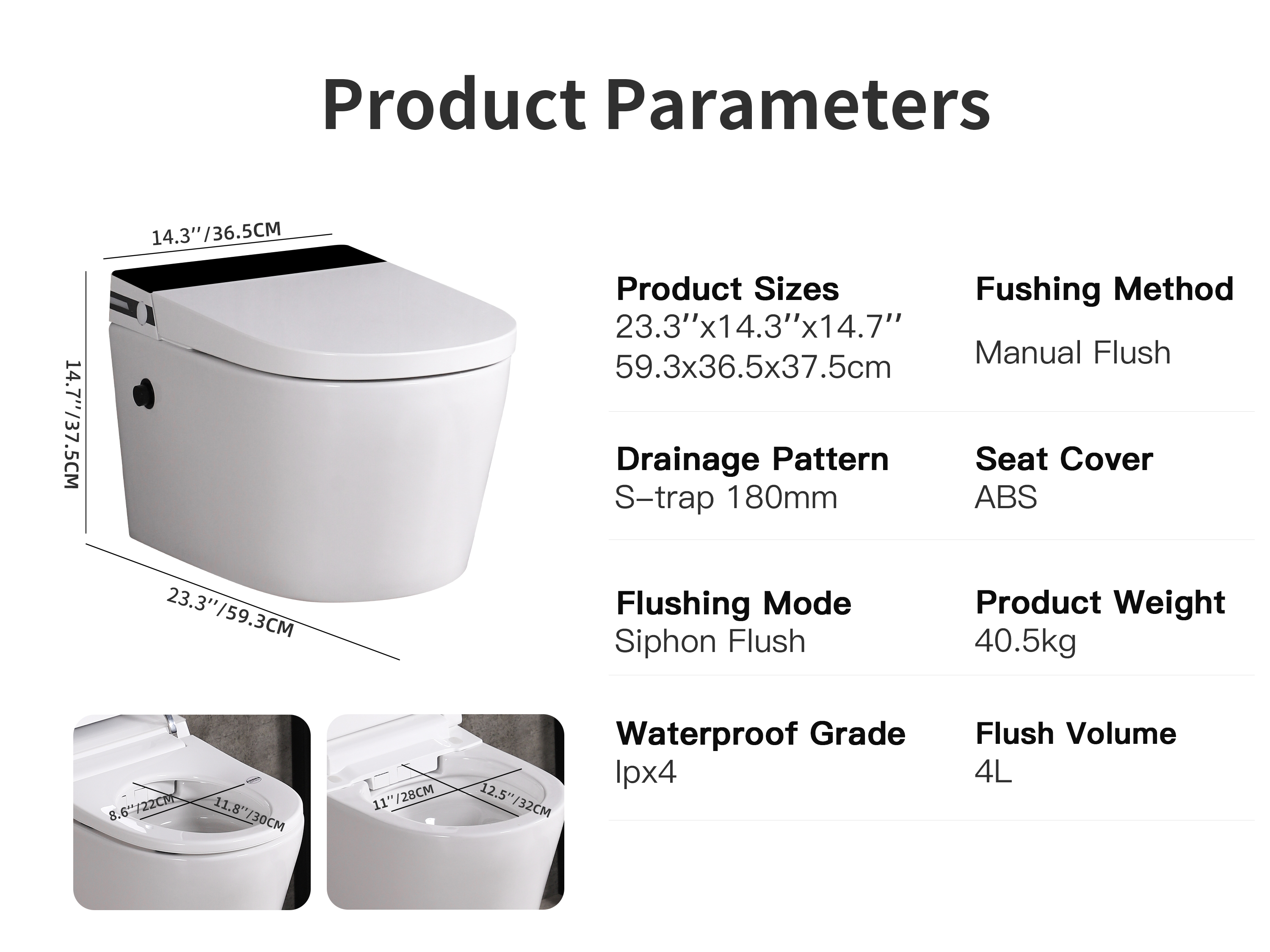 MEJE #T010W - New Wall Hung Toilet Combo, Soft Close Seat, Dual Flush