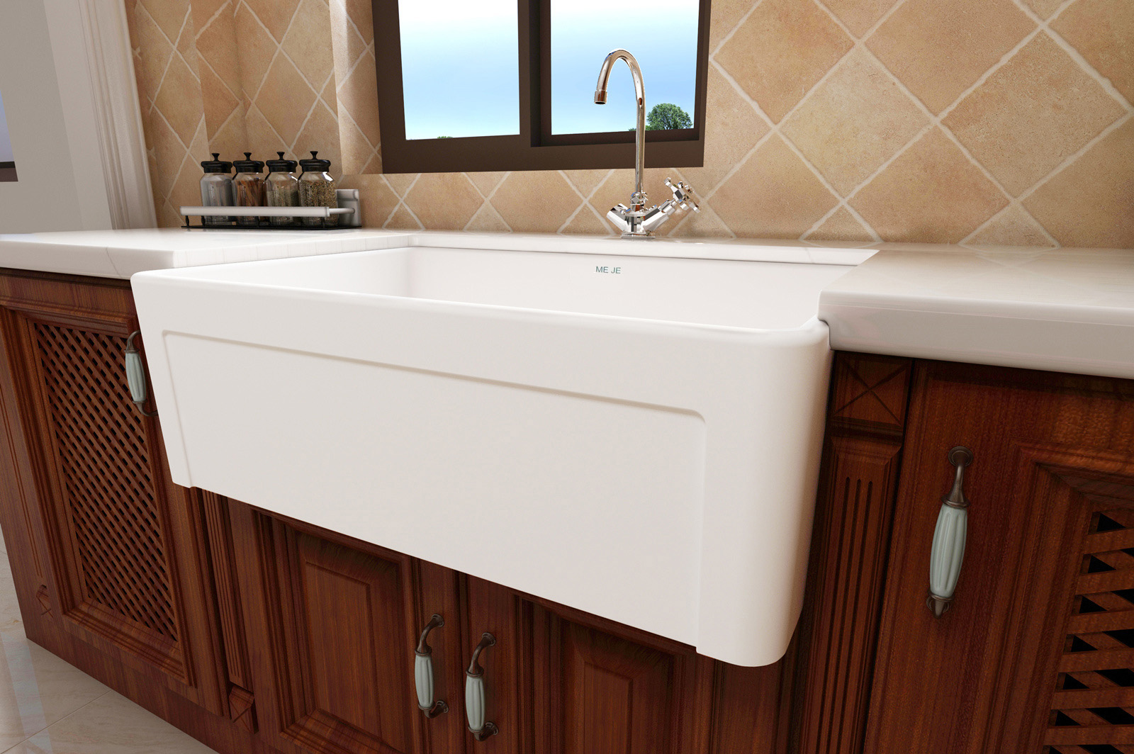 This white farmhouse kitchen sink is made of real fire-resistant clay, a special white clay that is fired at high temperature for extremely high strength and durability. |