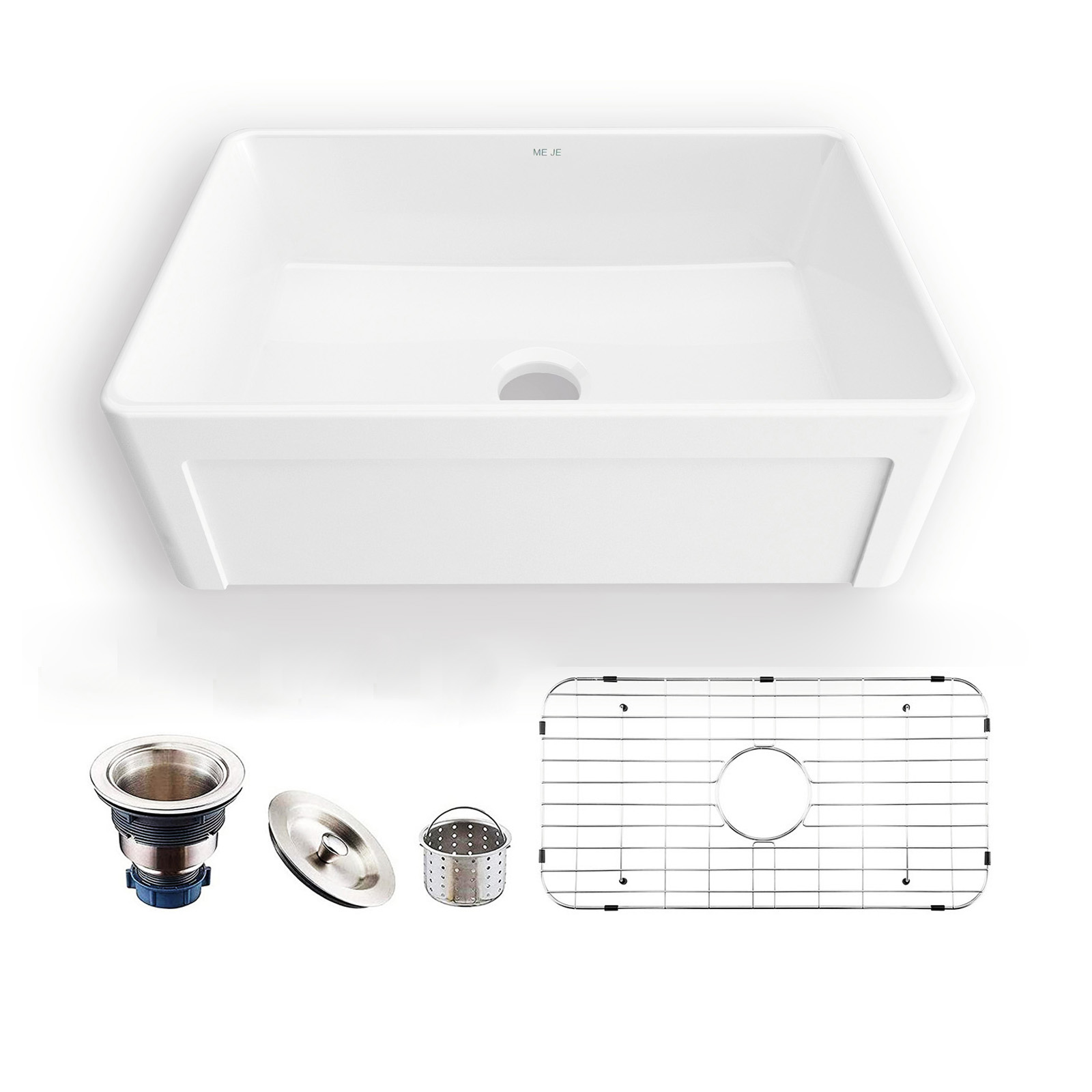 [ Stain Resistant ] : Exclusive, high-quality glazing technology prevents staining from food and water minerals. [ Heat resistant ] : The sink is heated to an extremely high temperature , so need to worry about damage from hot pots and pans. [ Impact Resistant ] : The sink use extremely durable fireclay with solid wall construction, can resists chipping and impact damage. [ Easy to clean ] : The super smooth white glazed finish is easy to clean and maintain. [ Anti Splash ] : Apron-front design protects cabinets from splash and water damage.
