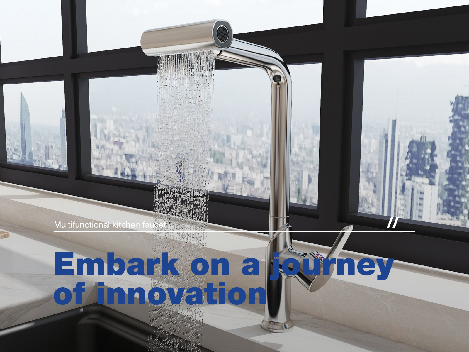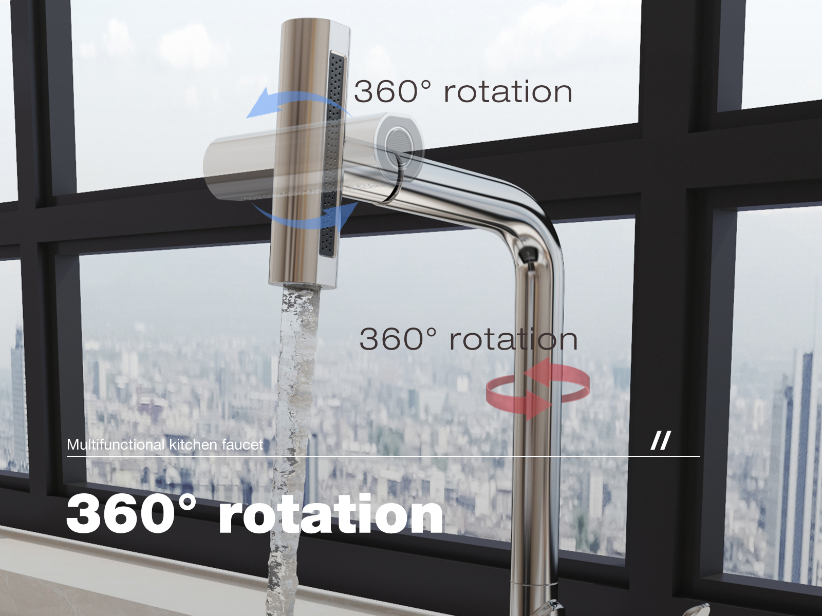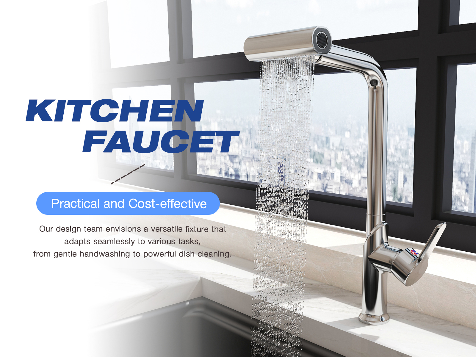 Waterfall Kitchen Faucet with Pull-Out Sprayer, SUS304 Stainless
