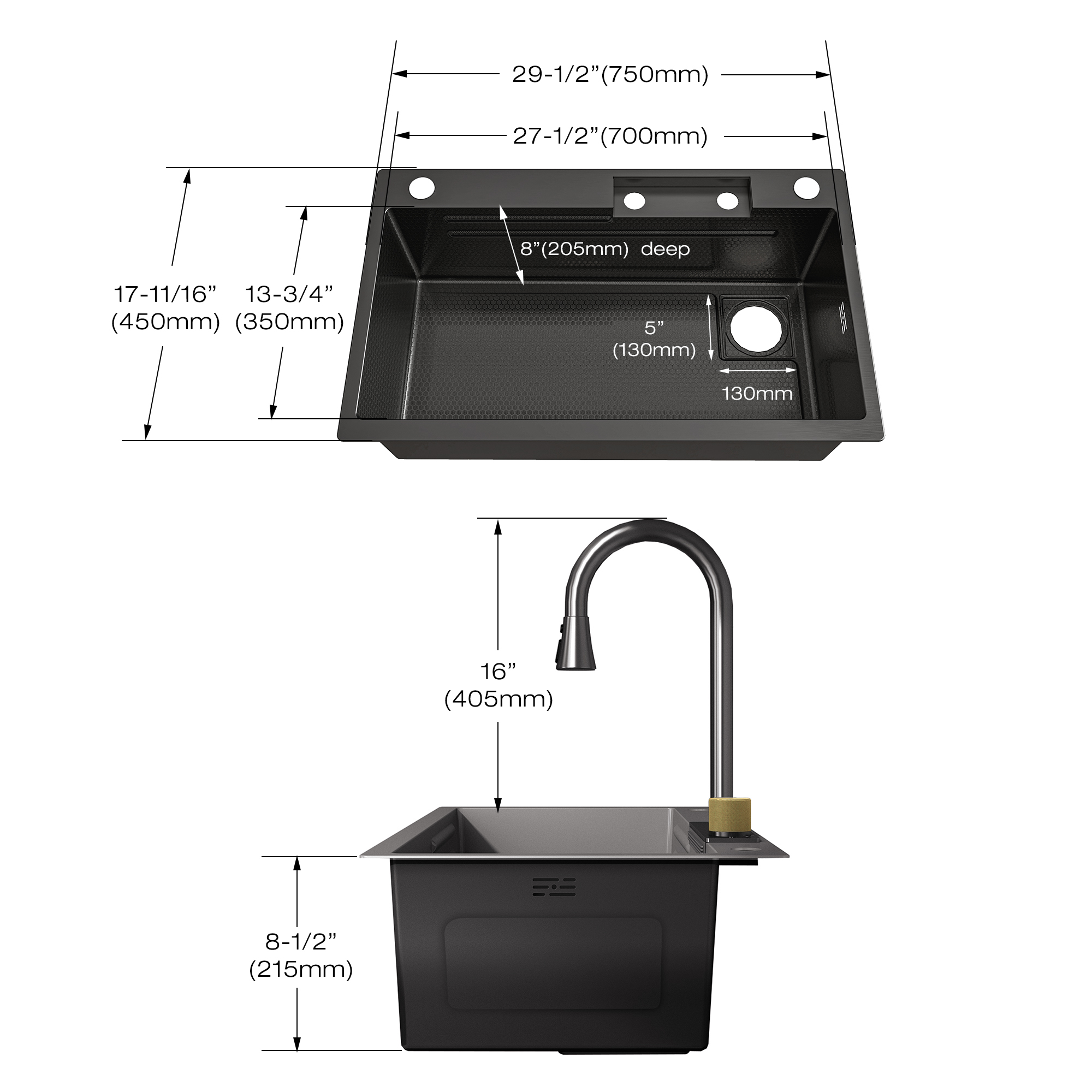 Made with a thicker stainless steel panel, nano-coated finish and honeycomb textured bottom, this kitchen sink is sure to stand the test of time.
