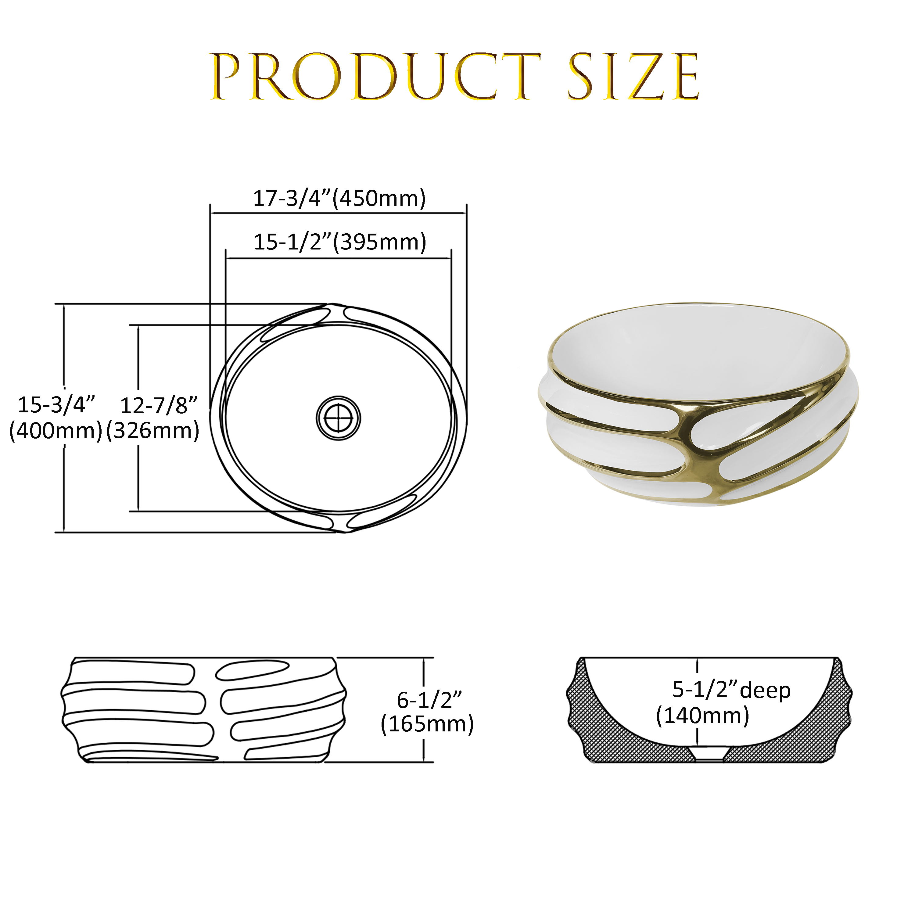Easy Above Counter installation without much modifications of bathroom cabinet and countertop. Noble and Elegant Design -- This countertop art basin sink is a modern oval shape and decorated with gold patten that makes it looks Noble and Elegant. The interior surface is smooth and delicate, the glaze is full of gloss and texture. The Shiny Gold Art Sink adds a touch of light luxury and timeless elegance to your bathroom, and is perfectly match with various decoration styles of the bathrooms.